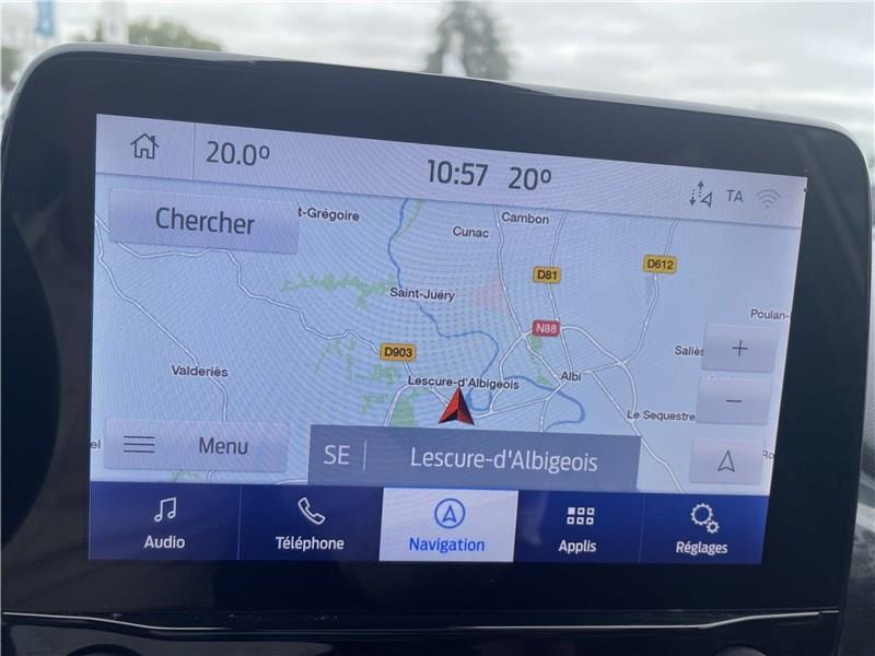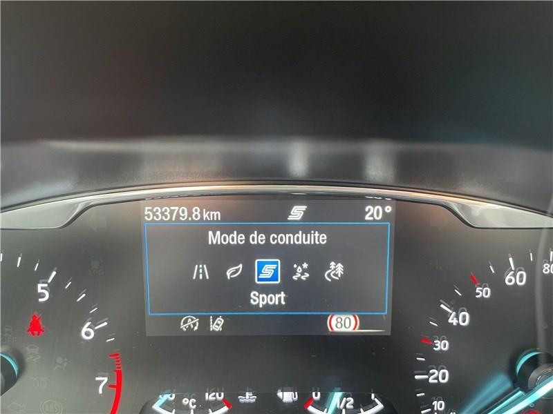 2 Fixations ISOFIX aux places AR|3 appuis-tête AR|5 ceintures de sécurité 3 points|5 Modes de conduite sélectionnables (normal, eco, sport, faible adhérence, trail)|Aide au démarrage en côte|Aide au maintien dans la voie avec détection des bas-côtés|Aide au stationnement AR|Airbags frontaux, latéraux (thorax) et rideaux|Air conditionné manuel|Alerte de ceinture de sécurité AV/AR|Alerte de franchissement involontaire de ligne|Allumage automatique des feux|Banquette AR rabattable 60/40|Becquet couleur carrosserie|Combiné d'instrumentation TFT couleur 4.2" avec Ecomode|Console centrale avec accoudoir et rangements|Contours de vitres noir brillant|Correcteur électronique de trajectoire (ESP)|Désactivation de l'airbag passager|Direction assistée électrique|Disques de frein AV|Eclairage d'ambiance intérieur|Environnement noir|Feux AR à LED|Feux de jour à LED|Feux de route intelligents - Commutation automatique des feux de route aux feux de croisement|FordPass Connect avec modem embarqué et fonction E-Call|Grille de calandre avec barres horizontales et contour façon chrome|Jantes alliage 17" 10 branches finition Absolute Black (pour pneus toutes saisons 215/55 R17)|Kit de réparation pneumatique|Levier de frein à main Sensico|Levier de vitesse Sensico|Limiteur de vitesse intelligent (affichage instantané des limitations de vitesse sur le tableau de bord)|Pack Confort|Pare-chocs couleur carrosserie|Peinture métallisée Gris Solar|Phares antibrouillard AV avec fonction éclairage des angles|Reconnaissance des panneaux de signalisation|Régulateur de vitesse|Rétroviseurs extérieurs couleur carrosserie, chauffants, réglables et rabattables électriquement avec rappel de clignotant intégré|Sellerie tissu noir Alhambra|Siège conducteur réglable en hauteur avec soutien lombaire|Siège passager réglable en hauteur avec soutien lombaire|Sièges Sport|Système audio Ford SYNC3 avec écran tactile 8", commandes vocales, 2 ports USB, alerte contresens, compatible AppLink, Apple CarPlay et Android auto, 7 hauts-parleurs|Système de navigation Europe et points d'intérêts Michelin|Système de prévention de collision avec freinage post-collision et détection piétons|Système de surveillance de la pression des pneus|Système MyKey (seconde clé programmable)|Tapis de sol AV avec surpiqûres|Trappe Easy Fuel|Vitres AR surteintées|Vitres AV/AR électriques à impulsion haut/bas|Volant 3 branches Sensico
