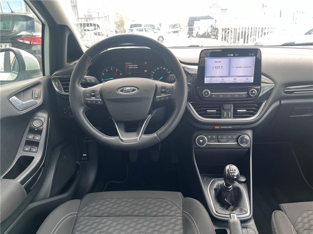 2 Fixations ISOFIX aux places AR|3ème appui-tête AR|5 ceintures de sécurité 3 points|Aide au démarrage en côte|Aide au maintien dans la voie|Aide au stationnement AR|Airbags frontaux, latéraux (thorax) et rideaux|Air conditionné automatique|Alerte de baisse de vigilance du conducteur|Alerte de ceinture de sécurité AV/AR|Alerte de franchissement involontaire de ligne|Allumage automatique des phares et des feux de route|Banquette rabattable 60/40|Becquet AR couleur carrosserie|Console centrale avec accoudoir|Désactivation de l'airbag passager|Direction assistée électrique|ESP|Grille de calandre avec barres horizontales et contour façon chrome|Jantes acier structuré 15" avec pneus 195/60/R15|Kit de réparation des pneumatiques|Lèche-vitres chromés|Limiteur et régulateur de vitesse|Ordinateur de bord couleur 4.2"|Pack Confort|Pare-chocs couleur carrosserie|Peinture non métallisée Blanc Glacier|Phares AV à LED avec antibrouillards intégrés|Phares et feux de route à LED|Poignées de portes couleur carrosserie|Reconnaissance des panneaux de signalisation|Rétroviseur électrochromique|Rétroviseurs extérieurs couleur carrosserie rabattables manuellement|Roue de secours 14''|Sellerie Tissu Noir Kasbah avec renforts latéraux Eton|Siège conducteur à réglage manuel 4 positions|Siège passager à réglage manuel 2 positions|Système audio Ford SYNC avec écran tactile 8", 2 ports USB, DAB, compatible AppLink, Apple CarPlay et Android auto|Système de surveillance de la pression des pneus|Système MyKey (seconde clé programmable)|Tapis de sol AV|Trappe Easy Fuel|Verrouillage centralisé à distance|Vitres AV et AR électriques|Volant 3 branches en cuir