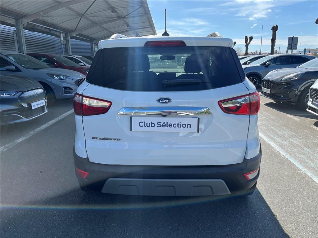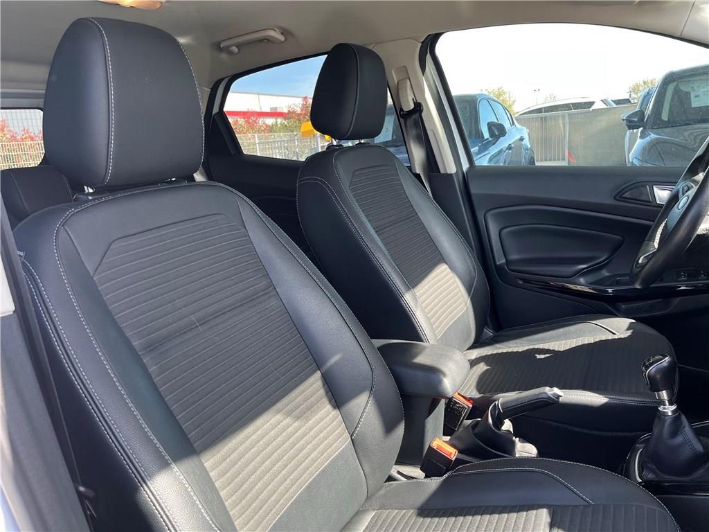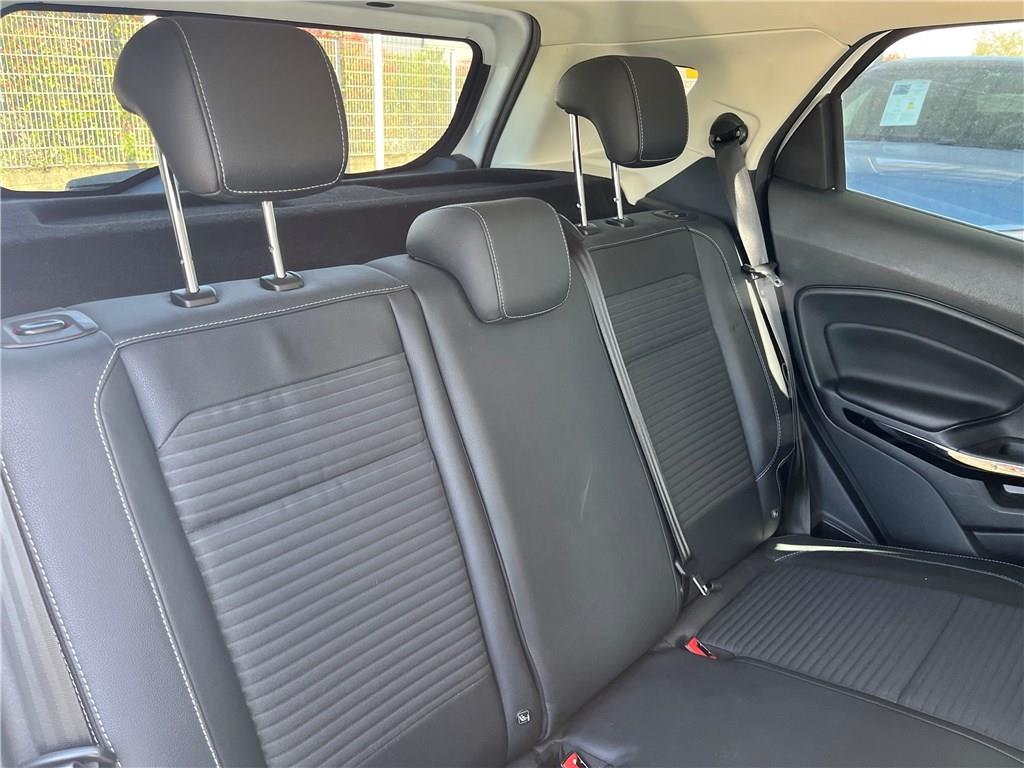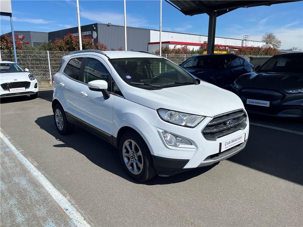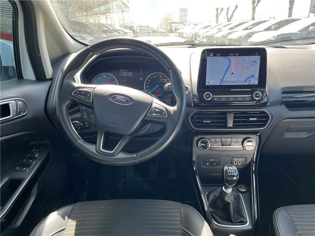 3ème appui-tête AR|Airbag genoux conducteur|Airbags frontaux, latéraux (thorax) et rideaux|Air conditionné automatique|Alarme périmétrique|Allumage automatique des phares et des essuie-glaces|Banquette AR rabattable 60/40|Barres de toit en aluminium|Bavettes de protection|Boîte à gants éclairée et réfrigérée|Calandre avec barres façon chrome|Chauffage auxiliaire|Console centrale avec accoudoir coullissant et porte-gobelets|Direction assistée électrique|Eclairage d'ambiance intérieur|Environnement noir|ESP + HLA (aide au démarrage en côte)|Feux antibrouillard AV|Feux de jour à LED|Jantes alliage 16"|Kit de réparation des pneumatiques|Lèche-vitres chromés|Levier de frein à main, pommeau de vitesse et volant gainés de cuir|Ordinateur de bord couleur 4.2"|PACK NAV (avec Modem embarqué)|Pack Parking 2|Pare-brise acoustique|Pare-chocs couleur carrosserie|Peinture non métallisée Blanc Glacier|Plancher de coffre ajustable|Plaques de seuil de portes AV Ecosport|Poignées de portes extérieures couleur carrosserie|Prise 12V AV et AR de la console centrale|Régulateur de vitesse|Rétroviseurs extérieurs couleur carrosserie électriques, chauffants, réglables et rabattables électriquement avec rappels de clignotants et lumière d'approche|Sellerie Cuir/Tissu Noir|Siège conducteur réglable en hauteur avec réglage lombaire|Système de démarrage sans clé Ford Power|Système de surveillance de la pression des pneus|Système multimédia Ford SYNC 3 avec navigation, écran tactile 8", 2 ports USB, commandes vocales 7HP - compatible Applink, Apple CarPlay et Android Auto|Système MyKey (seconde clé programmable)|Tapis de sol AV et AR Premium|Trappe à carburant EasyFuel|Vitres AR surteintées|Vitres AV/AR électriques à impulsion haut/bas à l'AV côté conducteur et passager