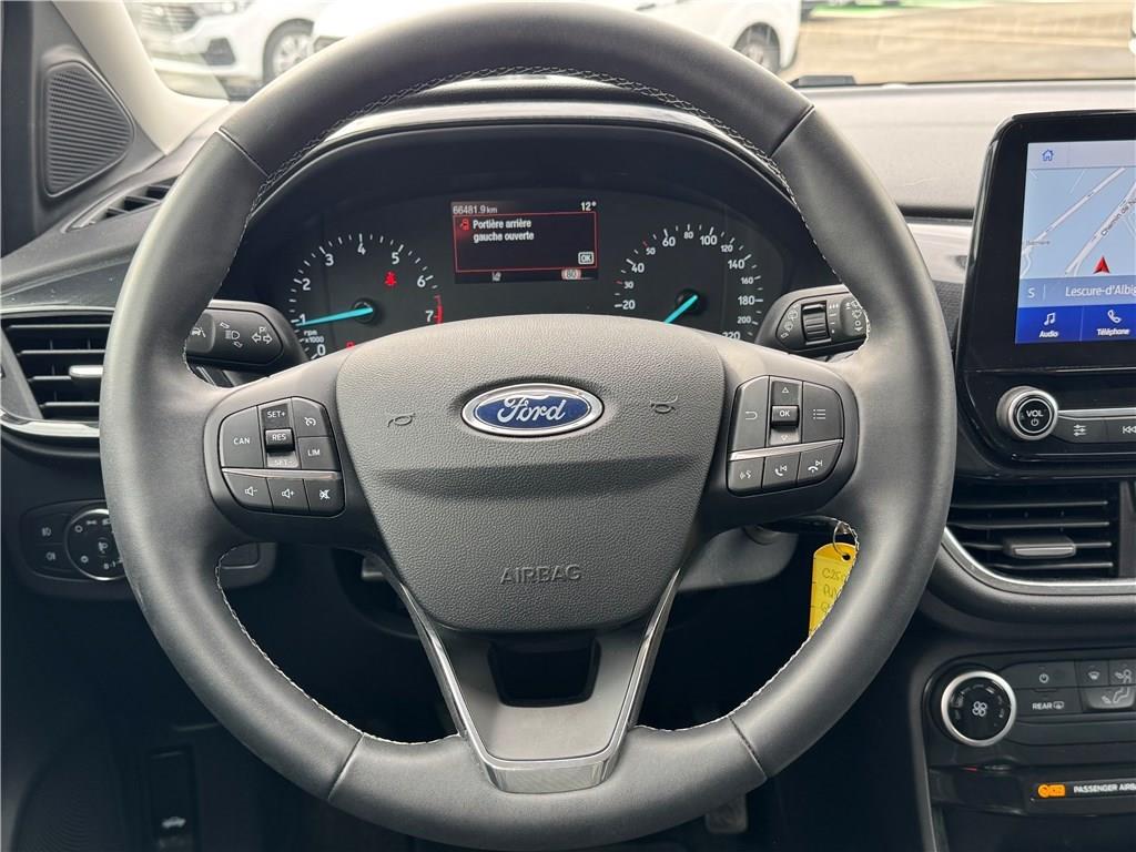 2 Fixations ISOFIX aux places AR|3ème appui-tête AR|5 ceintures de sécurité 3 points|5 Modes de conduite sélectionnables (normal, eco, sport, faible adhérence, trail)|Aide au démarrage en côte|Aide au maintien dans la voie avec détection des bas-côtés|Aide au stationnement AR|Airbags frontaux, latéraux (thorax) et rideaux|Air conditionné manuel|Alerte de ceinture de sécurité AV/AR|Alerte de franchissement involontaire de ligne|Allumage automatique des feux|Banquette AR rabattable 60/40|Becquet couleur carrosserie|Combiné d'instrumentation TFT couleur 4.2" avec Ecomode|Console centrale avec accoudoir et rangements|Contours de vitres noir brillant|Correcteur électronique de trajectoire (ESP)|Désactivation de l'airbag passager|Direction assistée électrique|Disques de frein AV|Eclairage d'ambiance intérieur|Environnement noir|Feux AR à LED|Feux de jour à LED|Feux de route intelligents - Commutation automatique des feux de route aux feux de croisement|FordPass Connect avec modem embarqué et fonction E-Call|Grille de calandre avec barres horizontales et contour façon chrome|Jantes acier 17" avec enjoliveur structuré 8 branches (pneus 215/55 R17)|Kit de réparation pneumatique|Levier de frein à main Sensico|Levier de vitesse Sensico|Limiteur de vitesse intelligent (affichage instantané des limitations de vitesse sur le tableau de bord)|Pare-chocs couleur carrosserie|Peinture non métallisée Blanc Glacier|Phares antibrouillard AV avec fonction éclairage des angles|Reconnaissance des panneaux de signalisation|Régulateur de vitesse|Rétroviseurs extérieurs couleur carrosserie, chauffants, réglables et rabattables électriquement avec rappel de clignotant intégré|Roue de secours 16"|Sellerie tissu noir Kasbah|Siège conducteur réglable en hauteur avec soutien lombaire|Sièges Sport|Système audio Ford SYNC3 avec écran tactile 8", commandes vocales, 2 ports USB, alerte contresens, compatible AppLink, Apple CarPlay et Android auto, 6 HP|Système de navigation Europe et points d'intérêts Michelin|Système de prévention de collision avec freinage post-collision et détection piétons|Système de surveillance de la pression des pneus|Système MyKey (seconde clé programmable)|Tapis de sol AV avec surpiqûres|Trappe Easy Fuel|Vitres AR surteintées|Vitres AV/AR électriques à impulsion haut/bas|Volant 3 branches Sensico