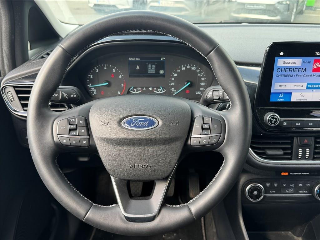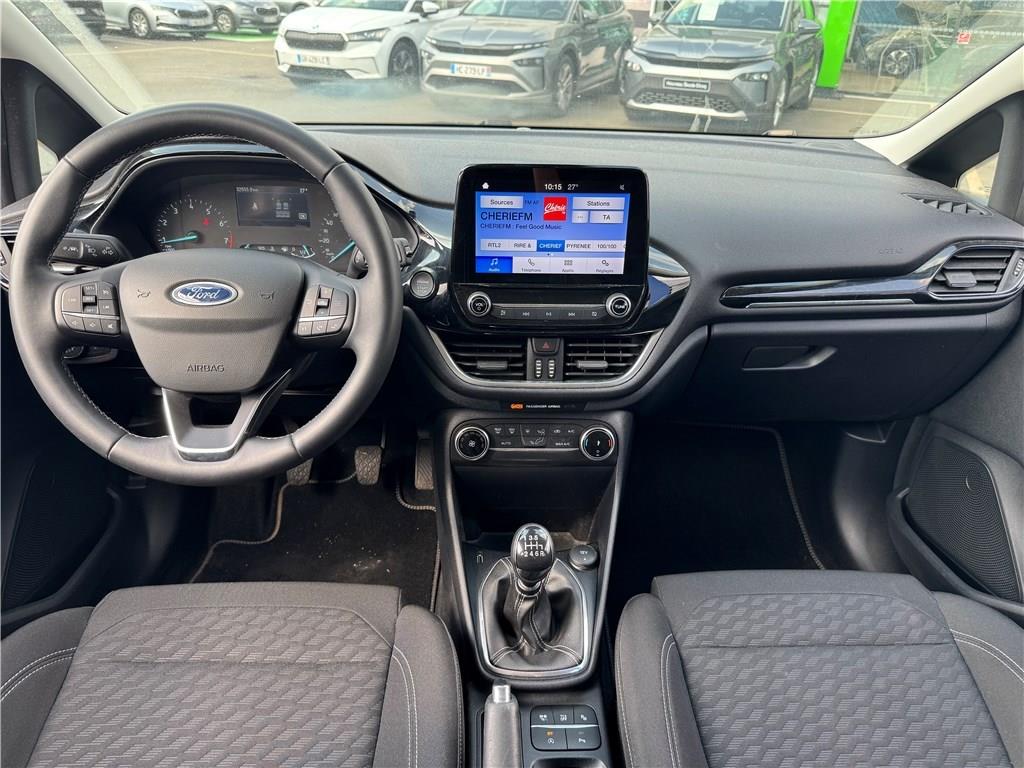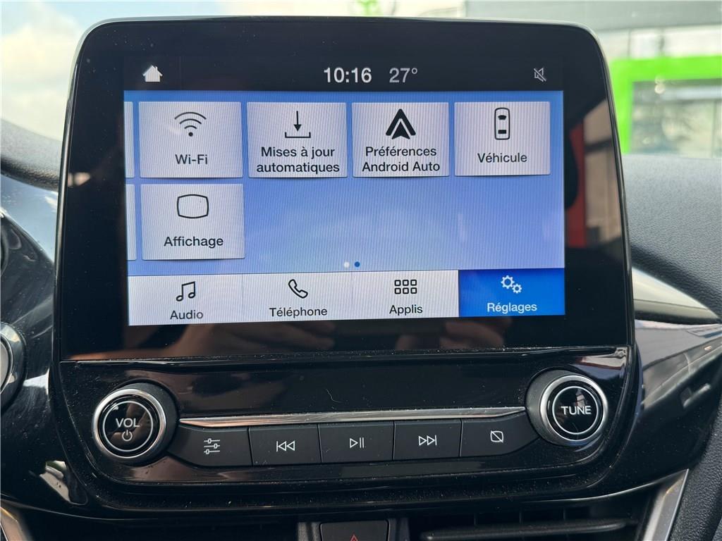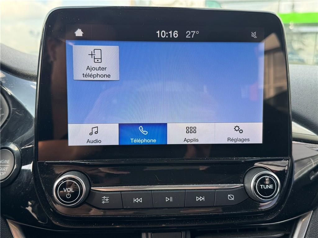2 Fixations ISOFIX aux places AR|3ème appui-tête AR|5 ceintures de sécurité 3 points|Aide au démarrage en côte|Aide au maintien dans la voie|Aide au stationnement AR|Airbags frontaux, latéraux (thorax) et rideaux|Air conditionné automatique|Alerte de baisse de vigilance du conducteur|Alerte de ceinture de sécurité AV/AR|Alerte de franchissement involontaire de ligne|Allumage automatique des phares et des feux de route|Banquette rabattable 60/40|Becquet AR couleur carrosserie|Console centrale avec accoudoir|Désactivation de l'airbag passager|Direction assistée électrique|ESP|Grille de calandre avec barres horizontales et contour façon chrome|Jantes acier structuré 15" avec pneus 195/60/R15|Kit de réparation des pneumatiques|Lèche-vitres chromés|Limiteur et régulateur de vitesse|Ordinateur de bord couleur 4.2"|Pare-chocs couleur carrosserie|Phares et feux de route à LED|Poignées de portes couleur carrosserie|Reconnaissance des panneaux de signalisation|Rétroviseur intérieur jour/nuit|Rétroviseurs extérieurs couleur carrosserie rabattables manuellement|Sellerie Tissu Noir Kasbah avec renforts latéraux Eton|Siège conducteur à réglage manuel 4 positions|Siège passager à réglage manuel 2 positions|Système audio Ford SYNC avec écran tactile 8", 2 ports USB, DAB, compatible AppLink, Apple CarPlay et Android auto|Système de surveillance de la pression des pneus|Système MyKey (seconde clé programmable)|Tapis de sol AV|Trappe Easy Fuel|Verrouillage centralisé à distance|Vitres AV et AR électriques|Volant 3 branches en cuir