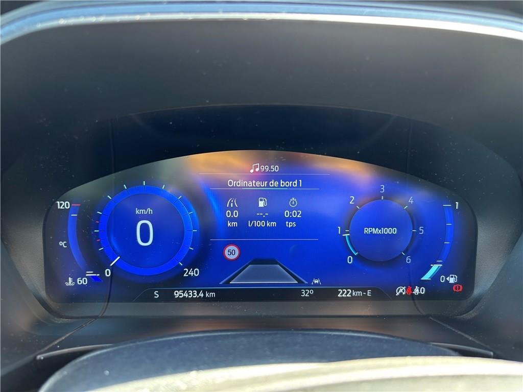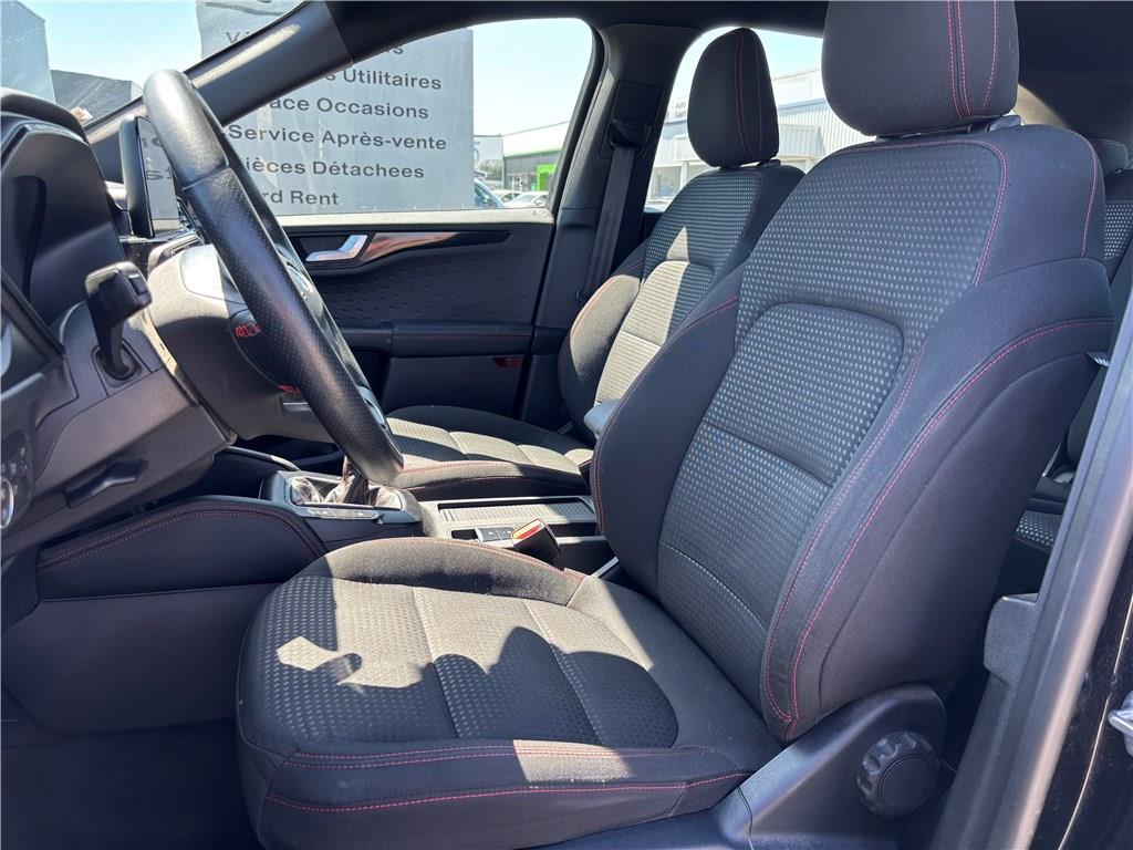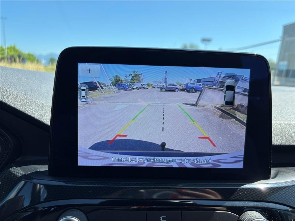 2 Fixations ISOFIX aux places AR|3ème appui-tête AR|5 ceintures de sécurité 3 points|Aide au démarrage en côte|Aide au maintien dans la voie avec avertisseur de franchissement de ligne|Aide au stationnement AV/AR|Airbags frontaux, latéraux (thorax) et rideaux|Air conditionné automatique bizone|Allumage automatique des essuie-glaces|Allumage automatique des feux|Badge ST-Line|Banquette AR coulissante rabattable (60/40)|Barres de toit Noir|Becquet AR couleur carrosserie|Bouton de démarrage "Ford Power"|Combiné d'instrumentalisation numérique 12.3" avec Ecomode|Console centrale avec accoudoir avec 2 prises USB|Contours de vitres noirs|Correcteur électronique de trajectoire (ESP)|Désactivation de l'airbag passager|Disques de frein AR|Double sortie d'échappement ST-Line|Eclairage compartiment coffre|Eclairage d'ambiance intérieur|Environnement noir|Feux de jour AV et AR à LED|FordPass Connect avec modem embarqué 4 et fonction eCall|Frein de stationnement électrique|Grille de calandre noire mate ST-Line|Jantes alliage 18" 5x2 branches finition St-Line avec pneus 225/60 R18|Kit Carrosserie ST-Line|Kit de réparation des pneumatiques|Levier de vitesse Sensico ST-Line|Ouverture du hayon à distance|Pack Assistance|Palettes au volant|Pédalier Aluminium|Peinture métallisée Noir Agate|Phares antibrouillard AV LED à anti-éblouissement avec fonction éclairage d'angle|Phares halogènes avec projecteur LED sur feux de croisements|Plancher de coffre ajustable|Plaques de seuil de portes AV ST-Line|Prise 12V dans le coffre|Recharge de téléphone par induction|Régulateur de vitesse|Rétroviseur intérieur électrochrome|Rétroviseurs extérieurs couleur carrosserie électriques, chauffants, rabattables avec fonction BLIS|Sécurité enfant (verrouillage manuel des portes AR)|Sellerie tissu noir Foundry avec renforts latéraux Eton|Siège conducteur réglable en hauteur avec soutien lombaire (8 positions)|Siège passager réglable en hauteur avec soutien lombaire (8 positions)|Sièges sport|Suspension ST-Line|Système audio bi-tuner AM/FM Ford SYNC3, avec écran tactile 8", DAB, commandes vocales, 2 ports USB,|Système de navigation Europe et points d'intérêts Michelin|Système de prévention de collision avec détection de piétons|Système de surveillance de la pression des pneus|Système KeyFree avec ouverture et démarrage sans clé|Système MyKey (seconde clé programmable)|Tapis de sol AV/AR ST-Line avec surpiqûres colorées|Trappe Easy Fuel|Verrouillage centralisé à distance|Vitres AV et AR électriques|Volant à méplat 3 branches Sensico ST-Line avec surpiqûres rouges