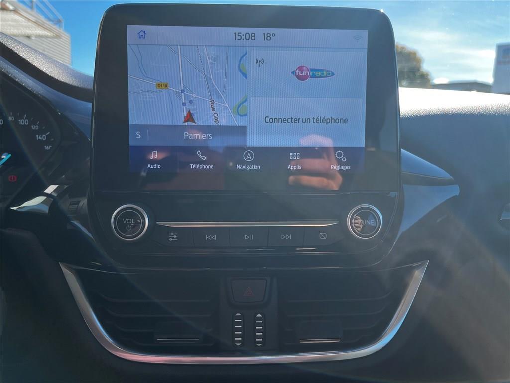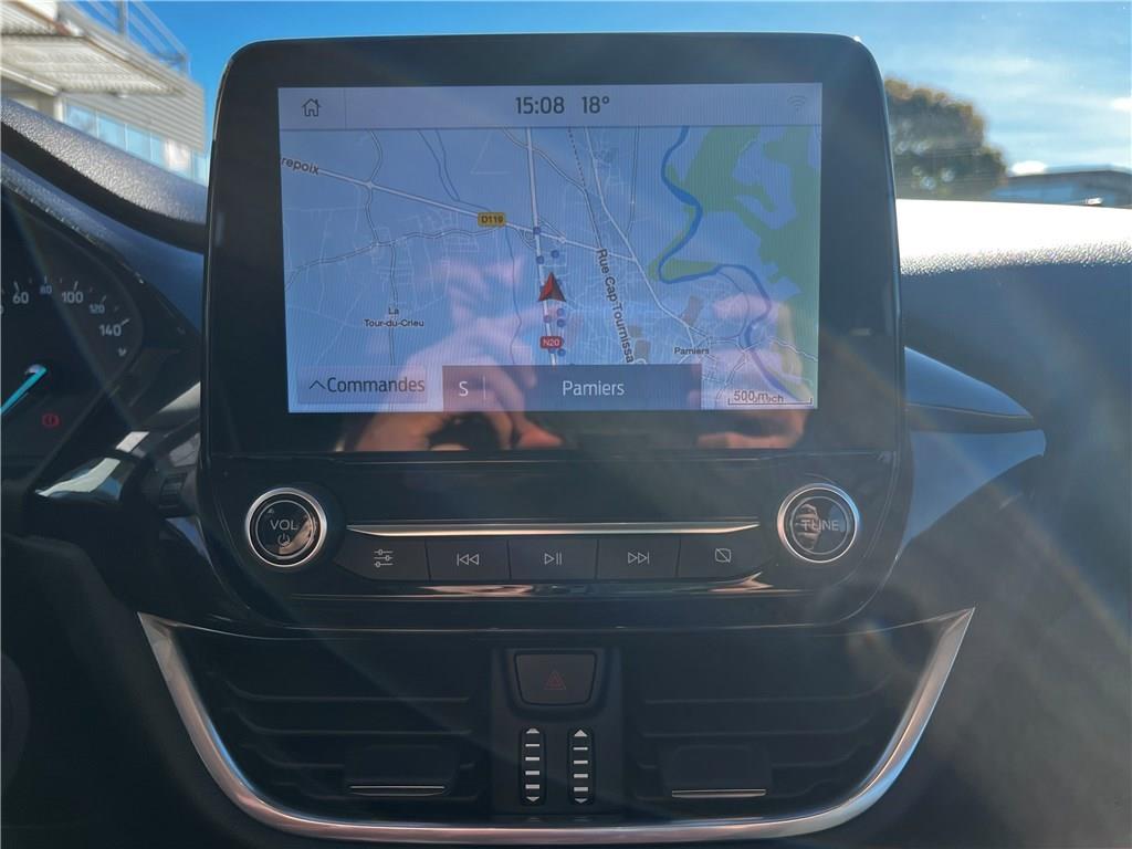 2 Fixations ISOFIX aux places AR|3ème appui-tête AR|5 ceintures de sécurité 3 points|5 Modes de conduite sélectionnables (normal, eco, sport, faible adhérence, trail)|Aide au démarrage en côte|Aide au maintien dans la voie avec détection des bas-côtés|Aide au stationnement AR|Airbags frontaux, latéraux (thorax) et rideaux|Air conditionné manuel|Alerte de ceinture de sécurité AV/AR|Alerte de franchissement involontaire de ligne|Allumage automatique des feux|Banquette AR rabattable 60/40|Becquet couleur carrosserie|Combiné d'instrumentation TFT couleur 4.2" avec Ecomode|Console centrale avec accoudoir et rangements|Contours de vitres noir brillant|Correcteur électronique de trajectoire (ESP)|Désactivation de l'airbag passager|Direction assistée électrique|Disques de frein AV|Eclairage d'ambiance intérieur|Environnement noir|Feux AR à LED|Feux de jour à LED|Feux de route intelligents - Commutation automatique des feux de route aux feux de croisement|FordPass Connect avec modem embarqué et fonction E-Call|Grille de calandre Active|Grille de calandre avec barres horizontales et contour finition chromée|Jantes acier 17" avec enjoliveur structuré 8 branches (pneus 215/55 R17)|Kit de réparation pneumatique|Levier de frein à main Sensico|Levier de vitesse Sensico|Limiteur de vitesse intelligent (affichage instantané des limitations de vitesse sur le tableau de|Pare-chocs couleur carrosserie|Peinture non métallisée Bleu Abysse|Phares antibrouillard AV avec fonction éclairage des angles|Reconnaissance des panneaux de signalisation|Régulateur de vitesse|Rétroviseurs extérieurs couleur carrosserie électriques, dégivrants et rabattables électriquement|Sellerie tissu noir Kasbah|Siège conducteur réglable en hauteur avec soutien lombaire|Sièges Sport|Système audio Ford SYNC3 avec écran tactile 8", commandes vocales, 2 ports USB, alerte contresens,|Système de navigation Europe et points d'intérêts Michelin|Système de prévention de collision avec freinage post-collision et détection piétons|Système de surveillance de la pression des pneus|Système MyKey (seconde clé programmable)|Tapis de sol AV avec surpiqûres|Trappe Easy Fuel|Vitres AV/AR électriques à impulsion haut/bas|Volant 3 branches Sensico