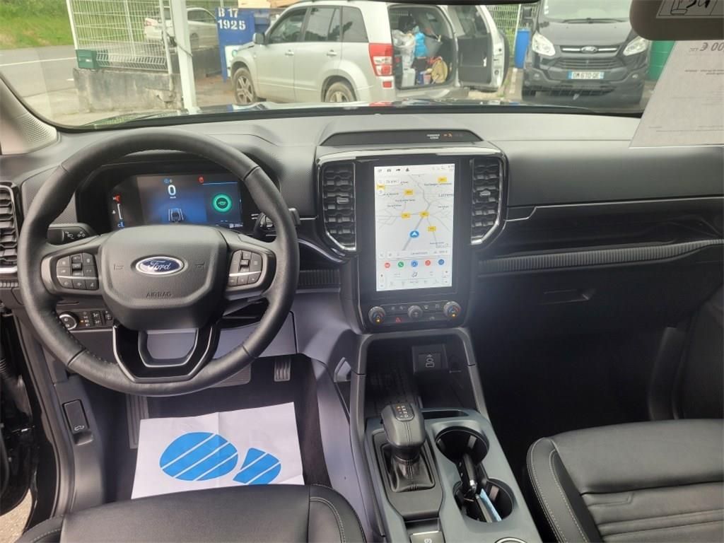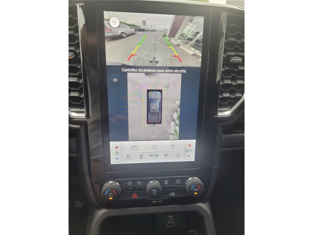 2 Clés avec télécommande|2 strapontins rang 2|ABS et contrôle dynamique de stabilité (ESP) avec amplificateur de freinage d'urgence|Aide au maintien dans la voie|Aide au stationnement AR|Aide au stationnement AV|Airbags frontaux, latéraux, rideaux et thorax conducteur et passager AV|Airbags genoux conducteur et passager AV|Airbag situé au niveau de l'accoudoir central entre le conducteur et le passager AV|Air conditionné automatique|Alarme volumétrique|Allumage automatique des feux avec commutation automatique entre feux de croisement et feux de route|Assistance au freinage d'urgence en marche AR|Bavettes AV et AR|Cache moteur|Caméra de recul|Capteur de pression des pneus|Ciel de toit clair|Console centrale avec espace de rangement double et accoudoir, 2 porte-gobelets|Contrôle dynamique de trajectoire (ESP) avec ABS & Feux de freinage d'urgence (EBL) & Freinage automatique d'urgence (AEB)|Crochets d'arrimage intérieurs de plateau|Dégivrage de la vitre AR|Démarrage à distance via FordPass|Direction assistée à assitance éléctrique (EPAS)|Double Anneau de remorquage à l'AV|Eclairage de l'espace de chargement|Eclairage extérieur 360° du véhicule|e-Shifter|Essuie-glace AV automatique|Faisceau attelage|Feux de jour à LED|Frein de stationnement électrique|Freins à disques à l'AV et à l'AR|Grille de calandre noire et Double Barres transversales chromées|Hayon à ouverture assistée|Jantes alliage 18" avec pneus toute saison 255/65 R18 comprend roue de secours alliage|Pack Electrique 2|PACK TECHNOLOGIE 68 - (DAT #5-I) - CAMERA 360° + BLIS TOW|Peinture métallisée : Noir agate|Rideau de plateau rigide coulissant manuel