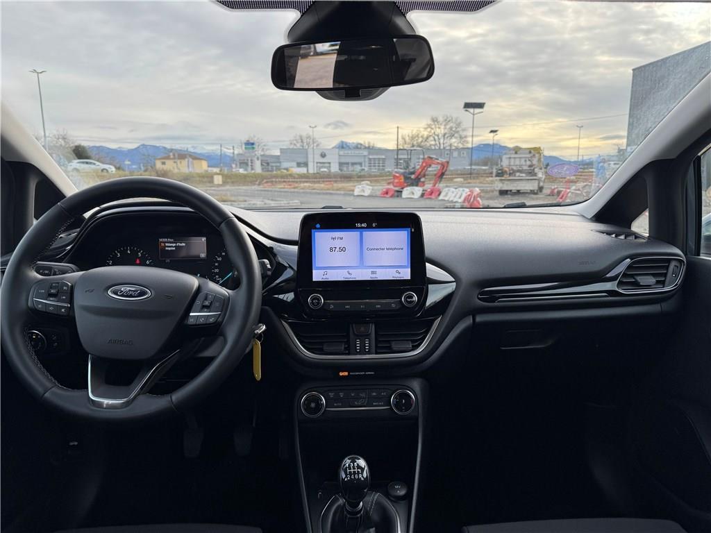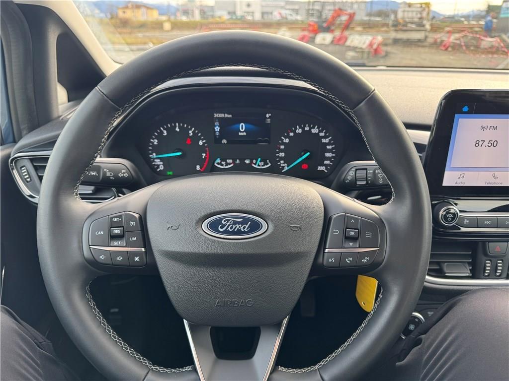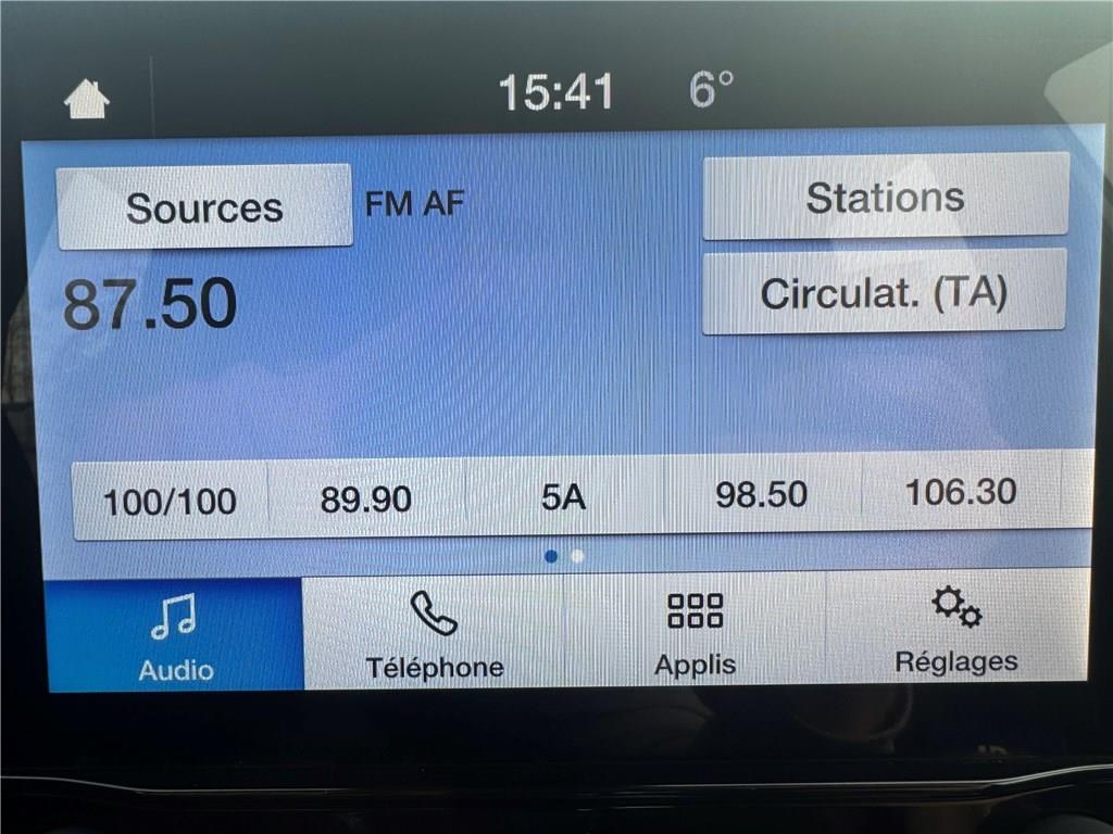 2 Fixations ISOFIX aux places AR|3ème appui-tête AR|5 ceintures de sécurité 3 points|Aide au démarrage en côte|Aide au maintien dans la voie|Aide au stationnement AR|Airbags frontaux, latéraux (thorax) et rideaux|Air conditionné automatique|Alerte de baisse de vigilance du conducteur|Alerte de ceinture de sécurité AV/AR|Alerte de franchissement involontaire de ligne|Allumage automatique des phares et des feux de route|Banquette rabattable 60/40|Becquet AR couleur carrosserie|Console centrale avec accoudoir|Crochet d'attelage détachable|Désactivation de l'airbag passager|Direction assistée électrique|ESP|Grille de calandre avec barres horizontales et contour façon chrome|Jantes acier structuré 15" avec pneus 195/60/R15|Kit de réparation des pneumatiques|Lèche-vitres chromés|Limiteur et régulateur de vitesse|Ordinateur de bord couleur 4.2"|Pack Vitres|Pare-chocs couleur carrosserie|Peinture métallisée Bleu Azur|Phares et feux de route à LED|Poignées de portes couleur carrosserie|Reconnaissance des panneaux de signalisation|Rétroviseur électrochromique|Rétroviseur intérieur jour/nuit|Rétroviseurs extérieurs couleur carrosserie rabattables manuellement|Rétroviseurs extérieurs réglables électriquement couleur carrosserie|Sellerie Tissu Noir Kasbah avec renforts latéraux Eton|Siège conducteur à réglage manuel 4 positions|Siège passager à réglage manuel 2 positions|Système audio Ford SYNC avec écran tactile 8", 2 ports USB, DAB, compatible AppLink, Apple CarPlay|Système de surveillance de la pression des pneus|Système MyKey (seconde clé programmable)|Tapis de sol AV|Trappe Easy Fuel|Verrouillage centralisé à distance|Vitres AV et AR électriques|Volant 3 branches en cuir