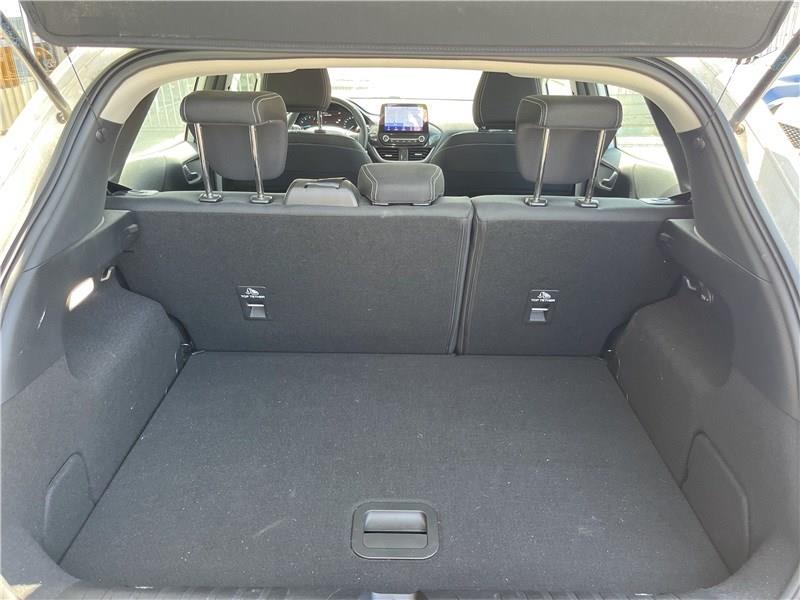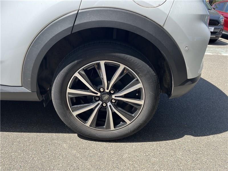2 Fixations ISOFIX aux places AR|3 appuis-tête AR|5 ceintures de sécurité 3 points|5 Modes de conduite sélectionnables (normal, eco, sport, faible adhérence, trail)|Aide au démarrage en côte|Aide au maintien dans la voie avec détection des bas-côtés|Aide au stationnement AR|Airbags frontaux, latéraux (thorax) et rideaux|Air conditionné manuel|Alerte de ceinture de sécurité AV/AR|Alerte de franchissement involontaire de ligne|Allumage automatique des feux|Banquette AR rabattable 60/40|Becquet couleur carrosserie|Combiné d'instrumentation TFT couleur 4.2" avec Ecomode|Console centrale avec accoudoir et rangements|Contours de vitres noir brillant|Correcteur électronique de trajectoire (ESP)|Désactivation de l'airbag passager|Direction assistée électrique|Disques de frein AV|Eclairage d'ambiance intérieur|Environnement noir|Feux AR à LED|Feux de jour à LED|Feux de route intelligents - Commutation automatique des feux de route aux feux de croisement|FordPass Connect avec modem embarqué et fonction E-Call|Grille de calandre avec barres horizontales et contour façon chrome|Jantes alliage 17" 10 branches finition Absolute Black (pour pneus toutes saisons 215/55 R17)|Kit de réparation pneumatique|Levier de frein à main Sensico|Levier de vitesse Sensico|Limiteur de vitesse intelligent (affichage instantané des limitations de vitesse sur le tableau de bord)|Pack Parking|Pare-chocs couleur carrosserie|Peinture non métallisée Blanc Glacier|Peinture non métallisée Bleu Abysse|Phares antibrouillard AV avec fonction éclairage des angles|Reconnaissance des panneaux de signalisation|Régulateur de vitesse|Rétroviseurs extérieurs couleur carrosserie, chauffants, réglables et rabattables électriquement avec rappel de clignotant intégré|Sellerie tissu noir Alhambra|Siège conducteur réglable en hauteur avec soutien lombaire|Sièges Sport|Système audio Ford SYNC3 avec écran tactile 8", commandes vocales, 2 ports USB, alerte contresens, compatible AppLink, Apple CarPlay et Android auto, 6 hauts-parleurs|Système de navigation Europe et points d'intérêts Michelin|Système de prévention de collision avec freinage post-collision et détection piétons|Système de surveillance de la pression des pneus|Système MyKey (seconde clé programmable)|Tapis de sol AV avec surpiqûres|Trappe Easy Fuel|Vitres AV/AR électriques à impulsion haut/bas|Volant 3 branches Sensico