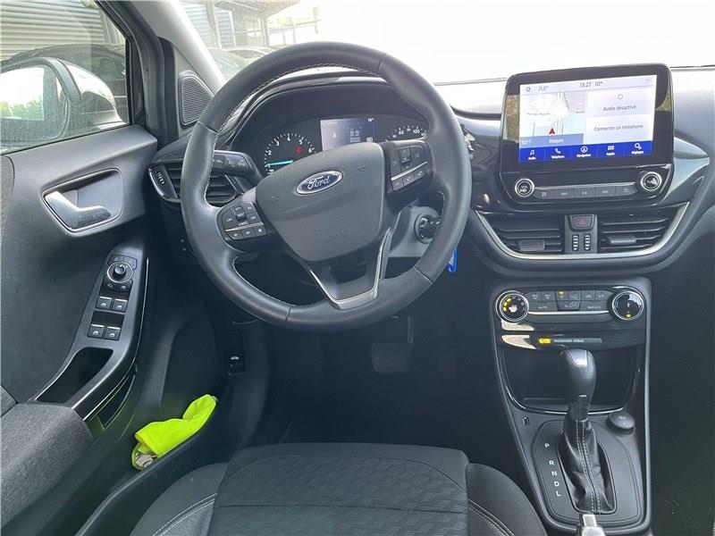 2 Fixations ISOFIX aux places AR|3 appuis-tête AR|5 ceintures de sécurité 3 points|5 Modes de conduite sélectionnables (normal, eco, sport, faible adhérence, trail)|Aide au démarrage en côte|Aide au maintien dans la voie avec détection des bas-côtés|Aide au stationnement AR|Airbags frontaux, latéraux (thorax) et rideaux|Air conditionné manuel|Alerte de ceinture de sécurité AV/AR|Alerte de franchissement involontaire de ligne|Allumage automatique des feux|Banquette AR rabattable 60/40|Becquet couleur carrosserie|Combiné d'instrumentation TFT couleur 4.2" avec Ecomode|Console centrale avec accoudoir et rangements|Contours de vitres noir brillant|Correcteur électronique de trajectoire (ESP)|Désactivation de l'airbag passager|Direction assistée électrique|Disques de frein AV|Eclairage d'ambiance intérieur|Environnement noir|Feux AR à LED|Feux de jour à LED|Feux de route intelligents - Commutation automatique des feux de route aux feux de croisement|FordPass Connect avec modem embarqué et fonction E-Call|Grille de calandre avec barres horizontales et contour façon chrome|Jantes alliage 17" 10 branches finition Absolute Black (pour pneus 215/55 R17)|Kit de réparation pneumatique|Levier de frein à main Sensico|Levier de vitesse Sensico|Limiteur de vitesse intelligent (affichage instantané des limitations de vitesse sur le tableau de bord)|Navigation avec Système audio Ford SYNC3 avec écran tactile 8", commandes vocales, 2 ports USB, alerte contresens, compatible AppLink, Apple CarPlay et Android auto, 6 hauts-parleurs|Pack Confort|Pack Parking|Pare-chocs couleur carrosserie|Peinture métallisée Noir Agate|Phares antibrouillard AV avec fonction éclairage des angles|Reconnaissance des panneaux de signalisation|Régulateur de vitesse|Rétroviseurs extérieurs couleur carrosserie, chauffants, réglables et rabattables électriquement avec rappel de clignotant intégré|Roue de secours 16"|Sellerie tissu noir Alhambra|Siège conducteur réglable en hauteur avec soutien lombaire|Sièges Sport|Système de prévention de collision avec freinage post-collision et détection piétons|Système de surveillance de la pression des pneus|Système MyKey (seconde clé programmable)|Tapis de sol AV avec surpiqûres|Trappe Easy Fuel|Vitres AV/AR électriques à impulsion haut/bas|Volant 3 branches Sensico