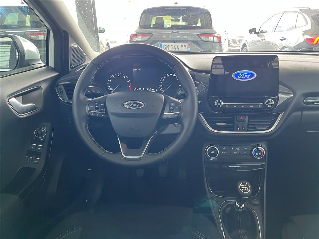 2 Fixations ISOFIX aux places AR|3ème appui-tête AR|5 ceintures de sécurité 3 points|5 Modes de conduite sélectionnables (normal, eco, sport, faible adhérence, trail)|Aide au démarrage en côte|Aide au maintien dans la voie avec détection des bas-côtés|Aide au stationnement AR|Airbags frontaux, latéraux (thorax) et rideaux|Air conditionné manuel|Alerte de ceinture de sécurité AV/AR|Alerte de franchissement involontaire de ligne|Allumage automatique des feux|Banquette AR rabattable 60/40|Batterie d'hybridation éléctrique|Becquet couleur carrosserie|Combiné d'instrumentation TFT couleur 4.2" avec Ecomode|Console centrale avec accoudoir et rangements|Contours de vitres noir brillant|Correcteur électronique de trajectoire (ESP)|Désactivation de l'airbag passager|Direction assistée électrique|Disques de frein AV|Eclairage d'ambiance intérieur|Environnement noir|Feux AR à LED|Feux de jour à LED|Feux de route intelligents - Commutation automatique des feux de route aux feux de croisement|FordPass Connect avec modem embarqué et fonction E-Call|Grille de calandre avec barres horizontales et contour finition chromée|Jantes acier 17" avec enjoliveur structuré 8 branches (pneus 215/55 R17)|Kit de réparation pneumatique|Levier de frein à main Sensico|Levier de vitesse Sensico|Limiteur de vitesse intelligent (affichage instantané des limitations de vitesse sur le tableau de bord)|Pare-chocs couleur carrosserie|Peinture non métallisée Blanc Glacier|Peinture non métallisée Bleu Abysse|Phares antibrouillard AV avec fonction éclairage des angles|Reconnaissance des panneaux de signalisation|Régulateur de vitesse|Rétroviseurs extérieurs couleur carrosserie électriques, dégivrants et rabattables électriquement avec clignotants intégrés|Sellerie tissu noir Kasbah|Siège conducteur réglable en hauteur avec soutien lombaire|Sièges Sport|Système audio Ford SYNC3 avec écran tactile 8", commandes vocales, 2 ports USB, alerte contresens, compatible AppLink, Apple CarPlay et Android auto, 6 HP|Système de navigation Europe et points d'intérêts Michelin|Système de prévention de collision avec freinage post-collision et détection piétons|Système de surveillance de la pression des pneus|Système MyKey (seconde clé programmable)|Tapis de sol AV avec surpiqûres|Trappe Easy Fuel|Vitres AV/AR électriques à impulsion haut/bas|Volant 3 branches Sensico