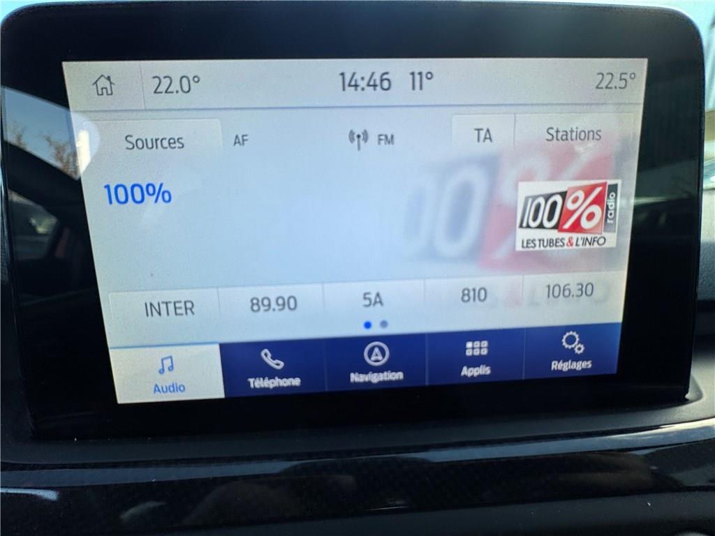 3ème appui-tête AR|3 Modes de conduite sélectionnables : Eco, Normal et Sport|Accoudoir central AR|Accoudoir central AR|Accoudoir central AR avec trappe à ski|Aide au démarrage en côte|Aide au maintien dans la voie|Aide au stationnement AV/AR|Airbags latéraux|Airbags rideaux|Air conditionné automatique bizone|Allumage automatique des feux|Badges latéraux ST-Line|Becquet AV/AR couleur carrosserie|Caméra de recul grand angle|Capteur de pression des pneus TPMS|Ciel de toit noir|Combiné d'instrumentalisation numérique 12.3"|Console centrale avec porte-gobelets|Double sortie d'échappement sport|Entourage des feux noir|E-Shifter - Sélecteur de vitesse rotatif|ESP|Essuie-glaces automatiques et rétroviseur intérieur électrochromique|Feux antibrouillard avec éclairage d'angles|Feux AR halogènes|Feux de jour à LED|Ford KeyFree - accès et démarrage sans clé|Ford KeyFree - accès et démarrage sans clé|Ford KeyFree - accès et démarrage sans clé|FordPass Connect - Modem embarqué - Abonnement gratuit pendant 10 ans|FordPass Connect - Modem embarqué, détail des fonctionnalités disponibles dans l'onglet|FordPass Connect - Modem embarqué, détail des fonctionnalités disponibles dans l'onglet|Freinage automatique post-collision|Frein de parking électrique|Grille de calandre noire ST-Line|HUD - Affichage tête-haute|Inserts exclusifs ST-Line|Jantes alliage 17" ST-Line - 5x2 branches|Joncs de vitres latérales noirs|Kit Carrosserie ST-Line|Kit de réparation|Lampes de lecture LED AV/AR|MyKey Génération 2|Pack Hiver|Pack Parking|Pack Style|Pack Technologie|Palettes au volant|Pare-chocs AV/AR couleur carrosserie|Pédalier Aluminium|Phares AV avec réflecteurs LED|Plaques de seuil de portes avec logo ST-Line|Poignées de portes AV/AR couleur carrosserie|Pommeau de levier de vitesse exclusifs ST-Line|Recharge de téléphone par induction|Régulateur de vitesse avec limiteur intelligent|Rétroviseurs extérieurs chauffants, réglables et rabattables électriquement couleurs carrosserie|Roue de secours galette|Sécurité enfant avec verrouillage électrique des portes AR|Sellerie Tissu spécifique ST-Line avec surpiqûres rouges|Siège conducteur et passager réglable en hauteur avec réglage lombaire|Siège conducteur et passager réglable en hauteur avec réglage lombaire|Siège conducteur réglable en hauteur avec réglage lombaire|Siège passager réglable en hauteur avec réglages lombaire|Suspension Sport|Système de prévention de collision avec détection de piétons et cyclistes|Système multimédia Ford SYNC 3 avec navigation, commandes vocales, DAB, écran tactile 8"|Tapis de sol AV et AR|Vitres AR surteintées|Vitres AV et AR électriques|Volant à méplat|Volant cuir à mé-plat exclusif ST-Line|Volant cuir à mé-plat exclusif ST-Line