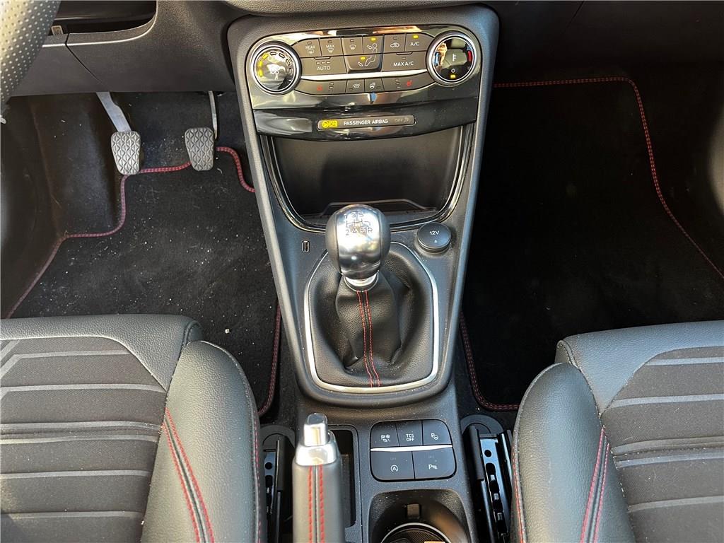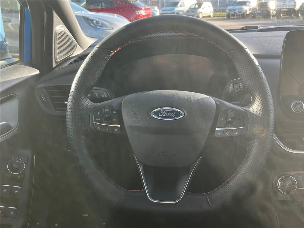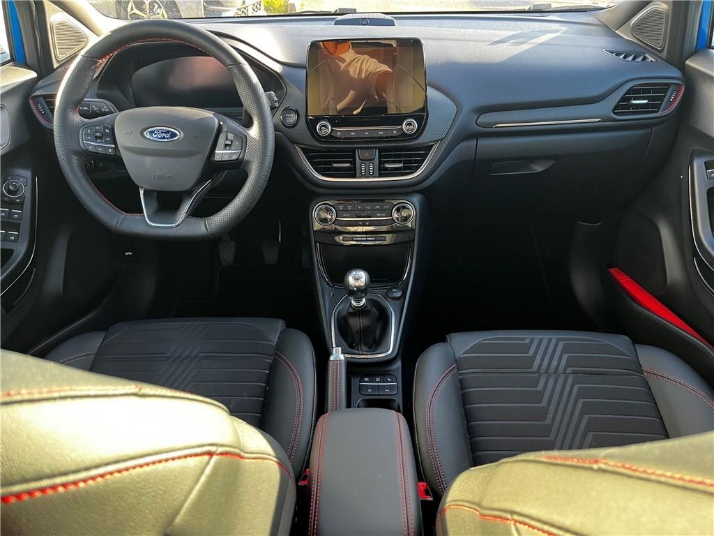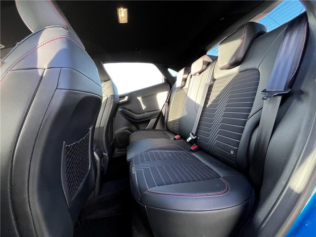 2 Fixations ISOFIX aux places AR|3ème appui-tête AR|5 ceintures de sécurité 3 points|5 Modes de conduite sélectionnables (normal, eco, sport, faible adhérence, trail)|Aide au démarrage en côte|Aide au maintien dans la voie avec détection des bas-côtés|Aide au stationnement AR|Aide au stationnement AR|Airbags frontaux, latéraux (thorax) et rideaux|Air conditionné automatique|Alerte de ceinture de sécurité AV/AR|Alerte de franchissement involontaire de ligne|Allumage automatique des essuie-glaces|Allumage automatique des feux|Badges extérieurs ST-Line|Banquette AR rabattable 60/40|Becquet AR couleur carrosserie|Becquet couleur carrosserie|Bouton de démarrage "Ford Power"|Combiné d'instrumentation numérique 12.3" avec Ecomode|Console centrale avec accoudoir et rangements|Correcteur électronique de trajectoire (ESP)|Désactivation de l'airbag passager|Direction assistée électrique|Disques de frein AV|Eclairage d'ambiance intérieur|Environnement noir|Feux antibrouillard AV avec fonction éclairage d'angle|Feux AR à LED|Feux de jour à LED|Feux de route intelligents - Commutation automatique des feux de route aux feux de croisement|FordPass Connect avec modem embarqué et fonction E-Call|Grille de calandre Active|Grille de calandre ST-Line|Jantes alliage 18" 5x2 branches finition Absolute Black (pour pneus 215/50 R18 92H)|Kit de carrosserie ST-Line|Kit de réparation pneumatique|Pack Hiver|Pack Sécurité Intégrale|Peinture métallisée Fashion Bleu Island