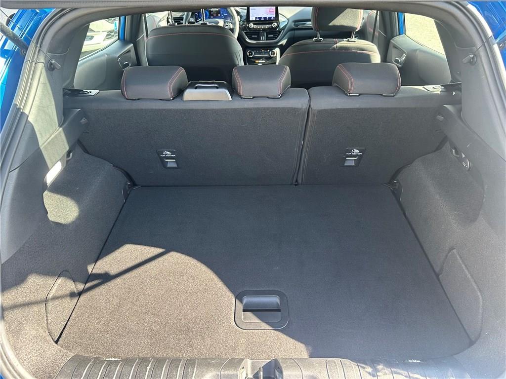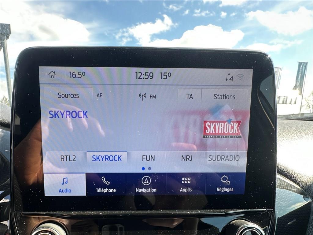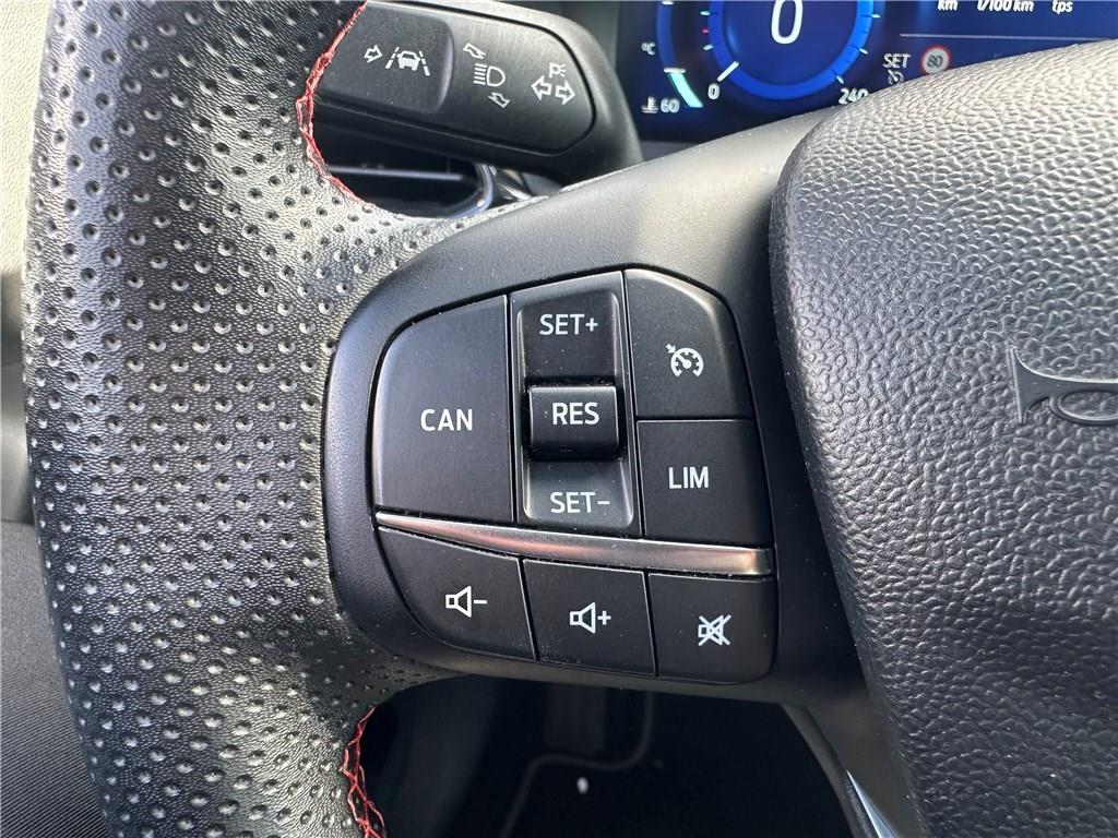2 Fixations ISOFIX aux places AR|3ème appui-tête AR|5 ceintures de sécurité 3 points|5 Modes de conduite sélectionnables (normal, eco, sport, faible adhérence, trail)|Aide au démarrage en côte|Aide au maintien dans la voie avec détection des bas-côtés|Aide au stationnement AR|Aide au stationnement AR|Airbags frontaux, latéraux (thorax) et rideaux|Air conditionné manuel|Alerte de ceinture de sécurité AV/AR|Alerte de franchissement involontaire de ligne|Allumage automatique des feux|Badges extérieurs ST-Line|Banquette AR rabattable 60/40|Becquet couleur carrosserie|Bouton de démarrage "Ford Power"|Combiné d'instrumentation numérique 12.3" avec Ecomode|Console centrale avec accoudoir et rangements|Correcteur électronique de trajectoire (ESP)|Désactivation de l'airbag passager|Direction assistée électrique|Disques de frein AV|Eclairage d'ambiance intérieur|Environnement noir|Feux AR à LED|Feux de jour à LED|Feux de route intelligents - Commutation automatique des feux de route aux feux de croisement|FordPass Connect avec modem embarqué et fonction E-Call|Grille de calandre ST-Line|Jantes alliage 17" 5x2 branches finition Black Machined (pour pneus toutes saisons 215/55 R17)|Kit de carrosserie ST-Line|Kit de réparation pneumatique|Levier de frein à main Sensico|Levier de vitesse Sensico|Limiteur de vitesse intelligent (affichage instantané des limitations de vitesse sur le tableau de|Navigation avec Système audio Ford SYNC3 avec écran tactile 8", commandes vocales, 2 ports USB,|Peinture non métallisée Bleu Abysse|Phares antibrouillard AV avec fonction éclairage des angles|Reconnaissance des panneaux de signalisation