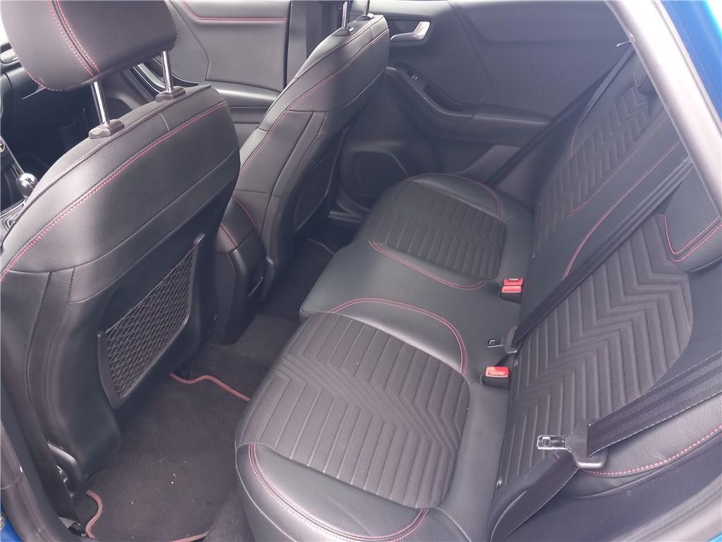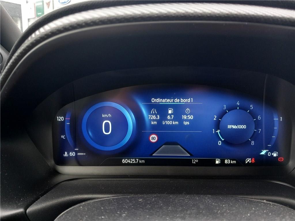 2 Fixations ISOFIX aux places AR|3ème appui-tête AR|5 ceintures de sécurité 3 points|5 Modes de conduite sélectionnables (normal, eco, sport, faible adhérence, trail)|Aide au démarrage en côte|Aide au maintien dans la voie avec détection des bas-côtés|Aide au stationnement AR|Airbags frontaux, latéraux (thorax) et rideaux|Air conditionné automatique|Alerte de ceinture de sécurité AV/AR|Alerte de franchissement involontaire de ligne|Allumage automatique des essuie-glaces|Allumage automatique des feux|Badges extérieurs ST-Line|Banquette AR rabattable 60/40|Becquet AR couleur carrosserie|Bouton de démarrage "Ford Power"|Combiné d'instrumentalisation numérique 12.3" avec Ecomode|Console centrale avec accoudoir et rangements|Correcteur électronique de trajectoire (ESP)|Désactivation de l'airbag passager|Direction assistée électrique|Eclairage d'ambiance intérieur|Environnement noir|Feux AR à LED|Feux de jour à LED|Feux de route intelligents - Commutation automatique des feux de route aux feux de croisement|FordPass Connect avec modem embarqué et fonction E-Call|Frein AV et AR à disques|Grille de calandre ST-Line|Jantes alliage 18" 5x2 branches finition Black Matt (pour pneus 215/50 R18 92H)|Kit de carrosserie ST-Line|Kit de réparation pneumatique|Levier de frein à main gainé de simili cuir|Levier de vitesse gainé de simili cuir avec insert aluminium|Limiteur de vitesse intelligent (affichage instantané des limitations de vitesse sur le tableau de|Pack Confort|Pare-brise acoustique|Pédalier Aluminium|Phares antibrouillard AV avec fonction éclairage des angles|Plancher de coffre ajustable|Plaques de seuil de portes AV ST-Line|Recharge de téléphone par induction|Reconnaissance des panneaux de signalisation|Régulateur de vitesse|Rétroviseur intérieur électrochrome|Rétroviseurs extérieurs couleur carrosserie électriques, chauffants et rabattables électriquement|Sellerie tissu noir Alhambra|Siège conducteur réglable en hauteur avec réglage lombaire|Siège passager réglable en hauteur avec réglages lombaire|Sortie d'echappement chromée|Suspension Sport|Système audio B&O avec radio numérique DAB, SYNC3 avec écran tactile 8", commandes vocales, 2 ports|Système de navigation Europe et points d'intérêts Michelin|Système de prévention de collision avec freinage post-collision et détection piétons|Système de surveillance de la pression des pneus|Système MyKey (seconde clé programmable)|Tapis de sol AV/AR avec surpiqûres|Trappe Easy Fuel|Verrouillage centralisé à distance|Vitres AR surteintées|Vitres AV électriques à impulsion haut/bas|Volant à méplat 3 branches ST-Line avec surpiqûres